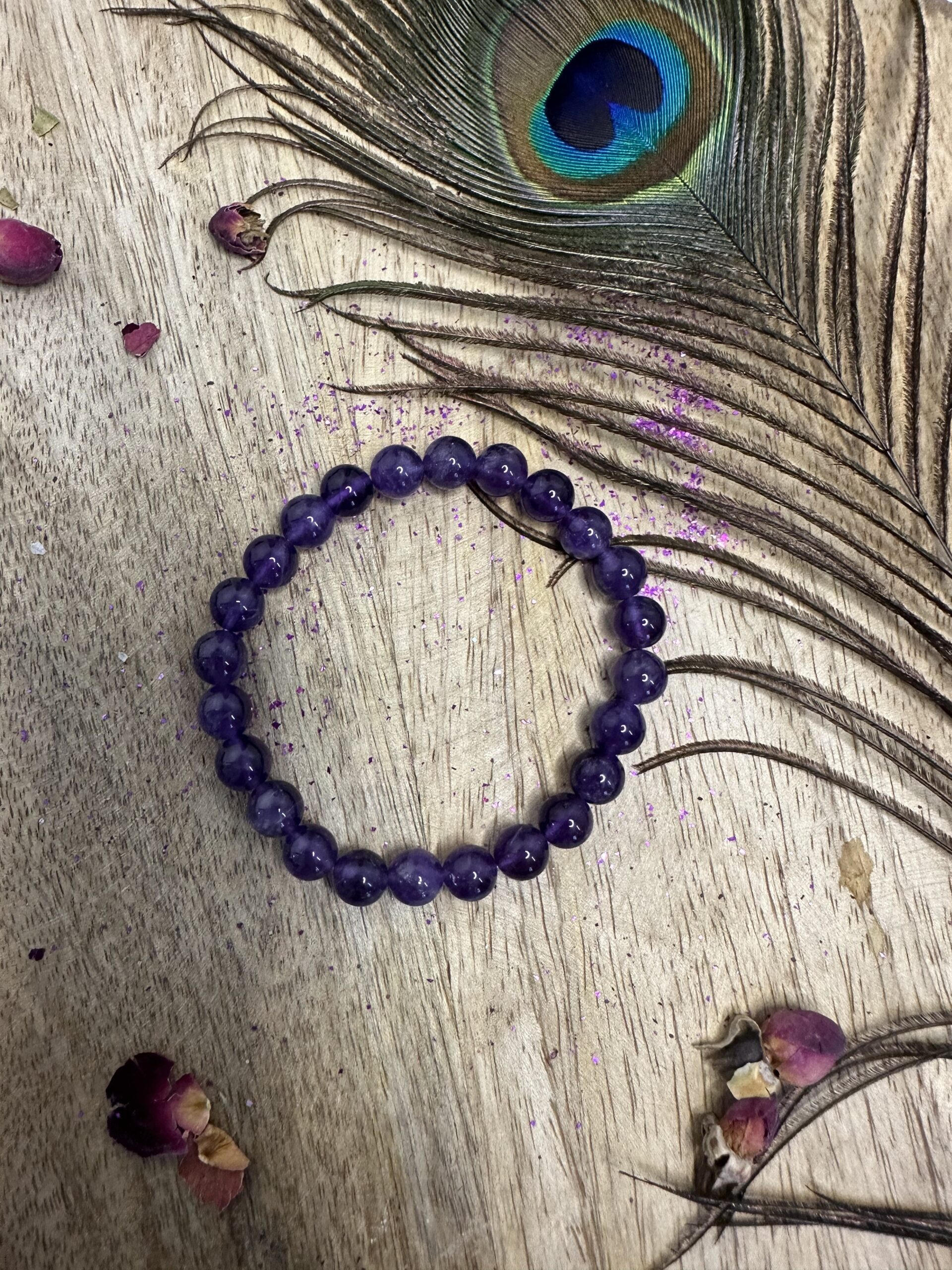 Indulge in the elegant beauty and profound energy of our Amethyst Crystal Bracelet. Handcrafted with care, each bead showcases the exquisite hues of amethyst, renowned for its calming and healing properties. As you adorn your wrist with this bracelet, you invite the tranquil vibrations of amethyst to envelop your being, promoting inner peace and spiritual clarity. Whether worn for its aesthetic appeal or as a tool for meditation and energy work, our Amethyst Crystal Bracelet serves as a wearable talisman, empowering you to navigate life with grace and harmony. Embrace the transformative energy of amethyst and elevate your style with this timeless accessory.