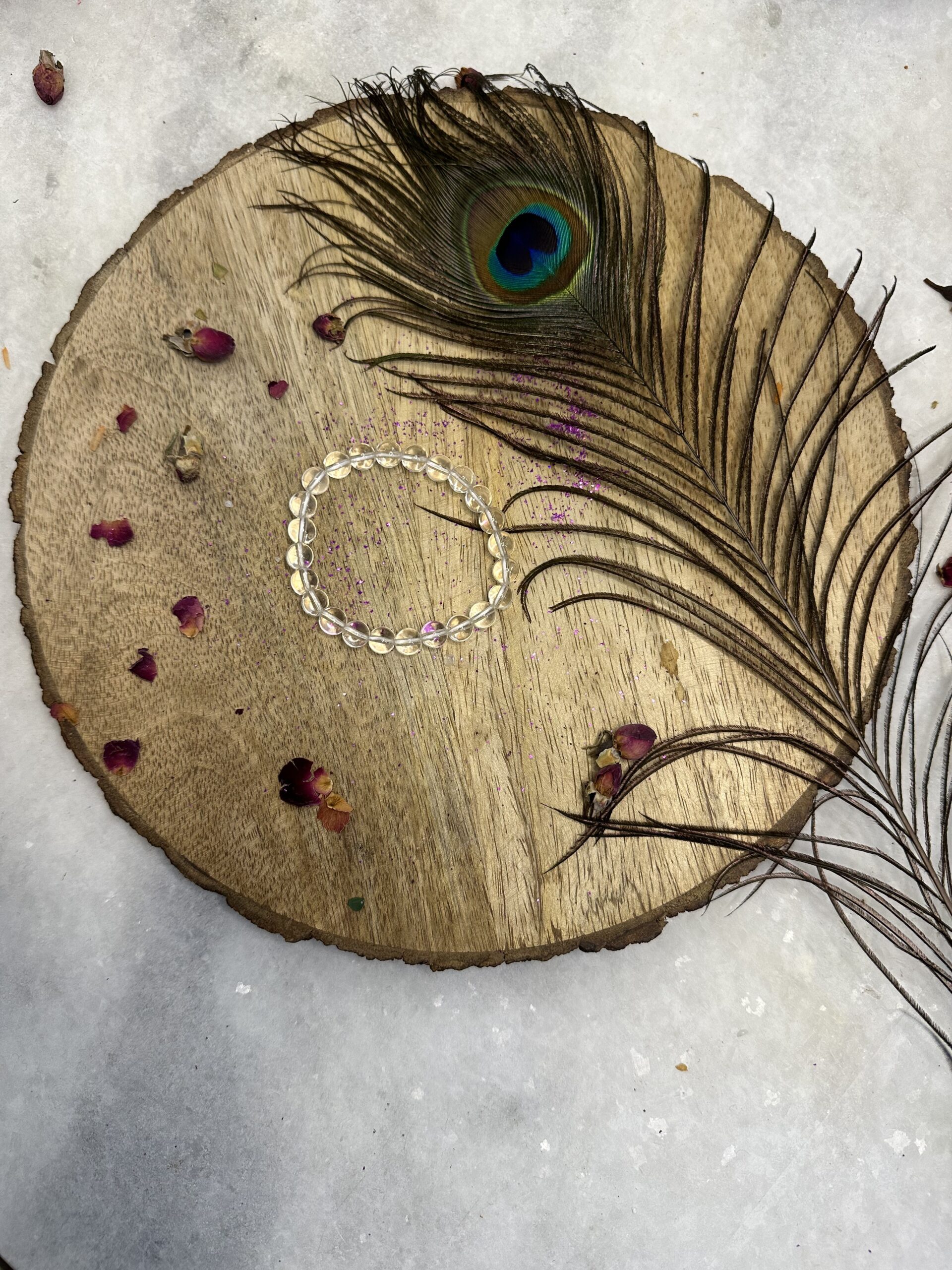 Elevate your energy and style with our Clear Quartz Crystal Bracelet. Each bead is meticulously crafted from premium clear quartz, capturing the pure essence of clarity and amplifying its vibrant energy. Clear quartz is revered for its ability to cleanse and align the chakras, promoting harmony and balance within the body. Whether worn as a fashion accessory or as a tool for meditation and manifestation, this bracelet serves as a constant reminder of your inner radiance and potential. Embrace the transformative power of clear quartz and elevate every aspect of your life with our Clear Quartz Crystal Bracelet.